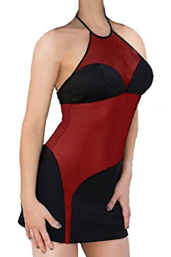 FG - لانجرى بيبى دول اسود واحمر قياس واحد ليكرا للنساء