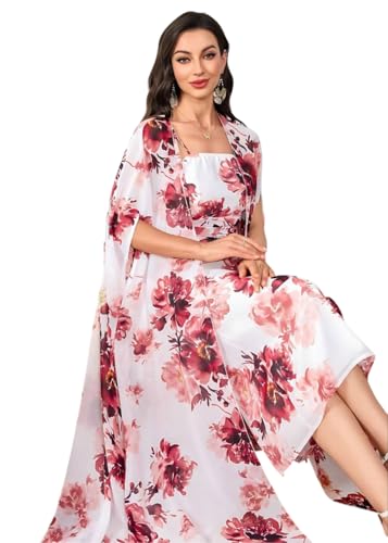 Generic - لانجري دريس حمالات ليكرا جيل مشدود من الاجناب و روب شيفون بنقشة زهور راقية ( وان سايز يلبس لحد 85 كيلو و بألوان متعددة )