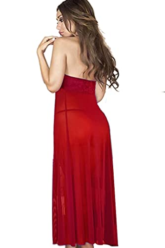 Generic - لانجيرى قميص نوم طويل تل مفتوح من الامام بكبات دانتيل احمر