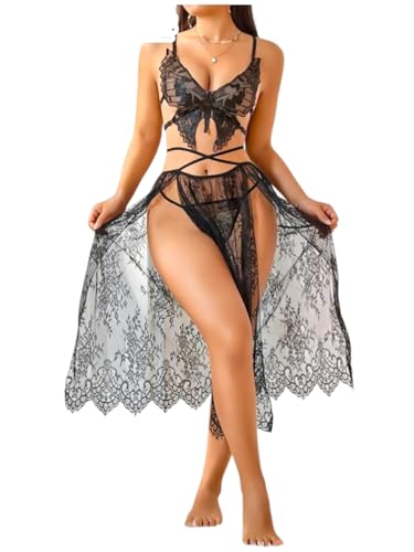 Generic - لانجيري قميص نوم فراشه دانتيل شفاف اسود مثي.ر جدا مقاس واحد