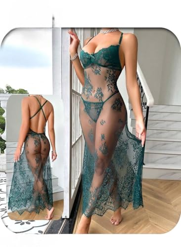 Generic - ملابس نوم لانجيري قميص نوم شفاف بيبي دول طويل اخضرمثي.ر جدا