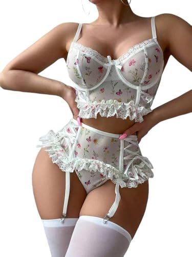 Generic - لانجيري سكسى لانجرى مثير بنمط بيكيني مزين بورود مع ميكروجيب قصيره مثيره مع شراب شفاف اكثر اثاره بيبى دول قصير قميص نوم حريمى انيق من Four H كود 491