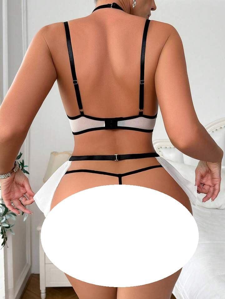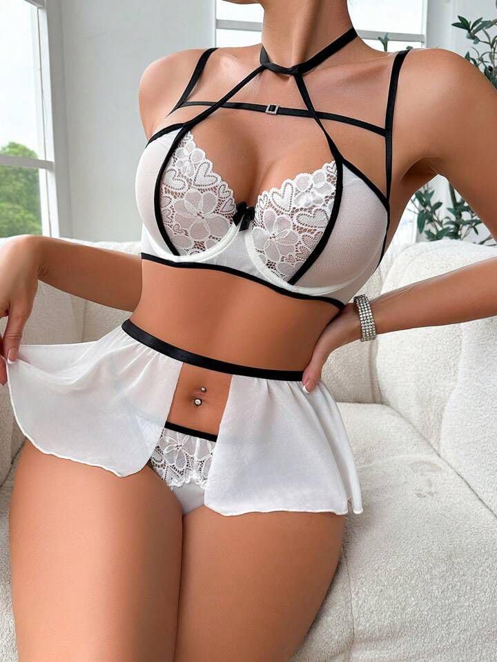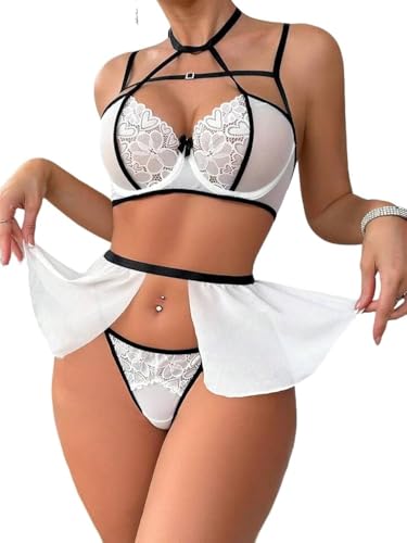 Generic - لانجيري سكسى لانجرى مثير شفاف بنمط فستان مزخرف بورود مكشوفمن الظهر مع ميكروجيب قصيره مثيره جدااا بيبى دول قميص نوم حريمى انيق من Four H كود 484