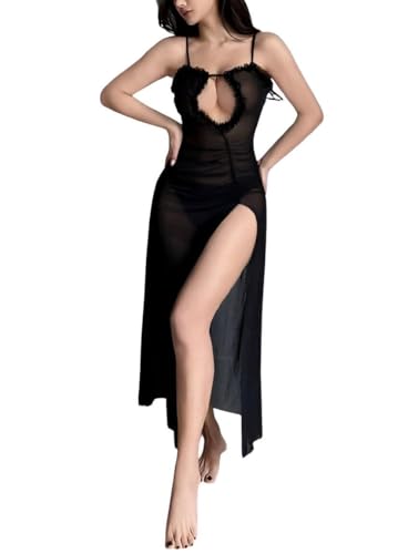 Generic - لانجري - طقم ملابس نوم مثيرة شفافة من قطعتين بتصميم فتحة جانبية، فستان نوم جذاب للنساء، يناسب حتى 85 كجم، الوان انيقة، مقاس واحد مريح وانيق