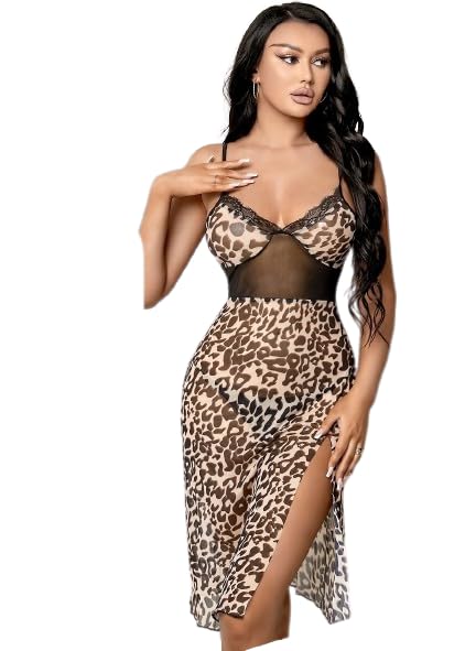 Generic - لانجيري شيفون بتصميم تايجر - مفتوح من جانب واحد - مع تول البطن نساء