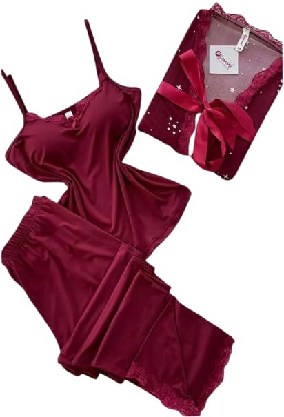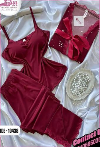 Generic - لانجيري حريمي + روب انيق مع حزام شيك وتريندي خامة قطن مناسب لكل الاذواق لون نبيتي