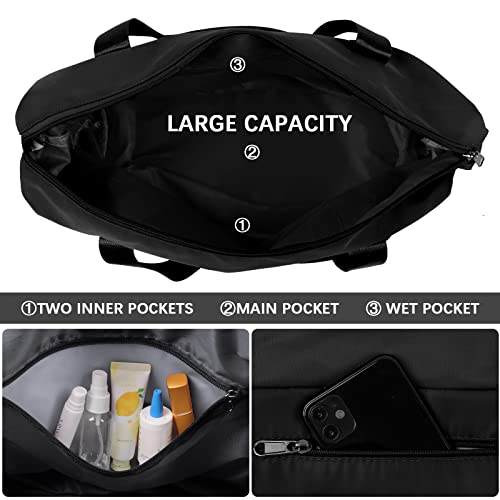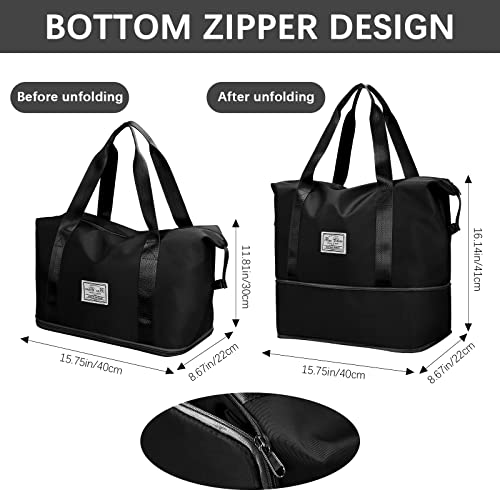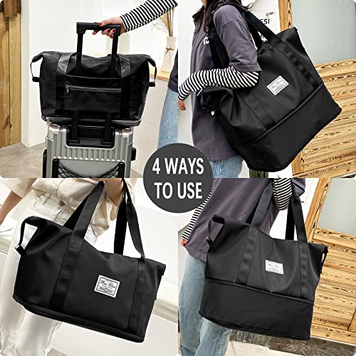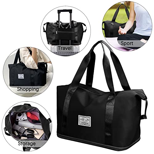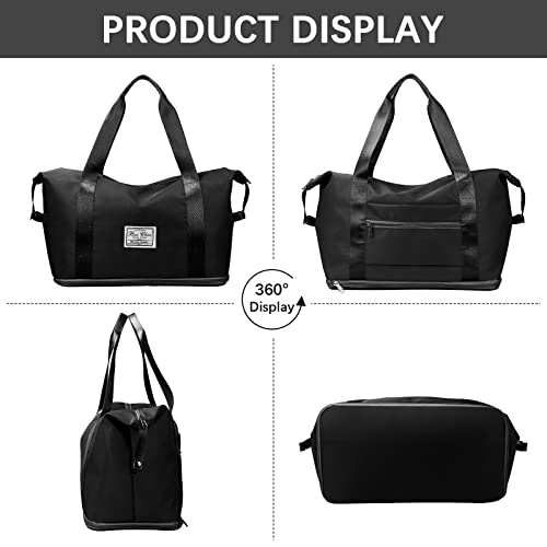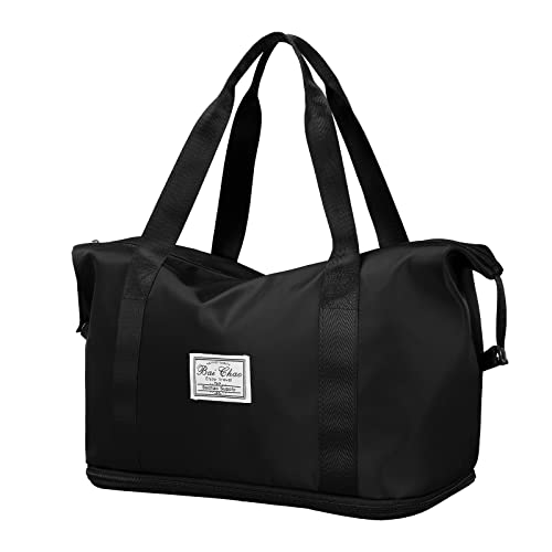 LINGSFIRE - شنطة دفل للسفر من لينجسفاير قابلة للطي بسعة كبيرة للامتعة، خفيفة الوزن ومضادة للماء، شنطة رياضية مع جيب للملابس الرطبة مناسبة للتسوق, أسود، رمادي، نايلون قماش