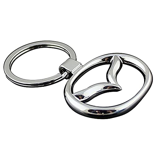 LINGSHI - سلسلة مفاتيح معدنية من الكروم ثلاثية الابعاد بشعار السيارة لينغشي - خليط معدني تناسب سيارة مازدا مقاس واحد فضي