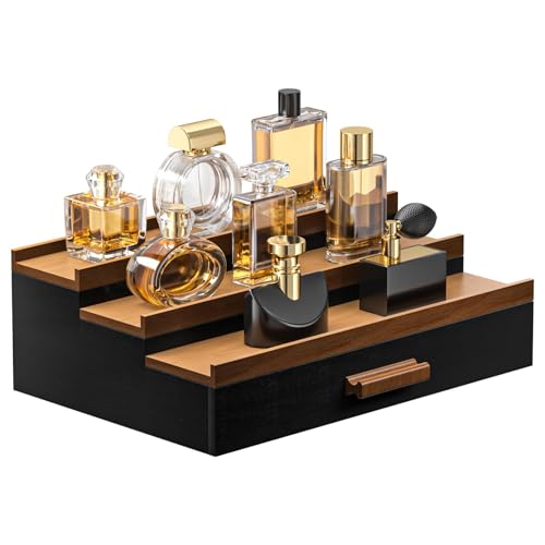 Lingusta - منظم كولونيا خشبي للرجال من لينغوستا، 3 طبقات من عرض الكولونيا مع درج للتخزين، عرض منظم للعطور، هدية رائعة للرجال (خشب الجوز الأسود)