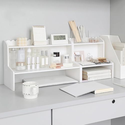 LINGWEI - منظم مكتب خشب ليفي متوسط الكثافة (ام دي اف)، رف تخزين لسطح المكتب من دورين للمستلزمات المكتبية والكتب والاكسسوارات، حامل مكتبي للمنزل بسعة كبيرة من لينجوي