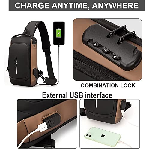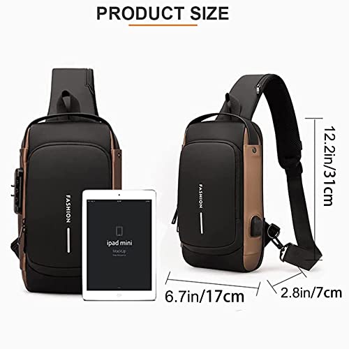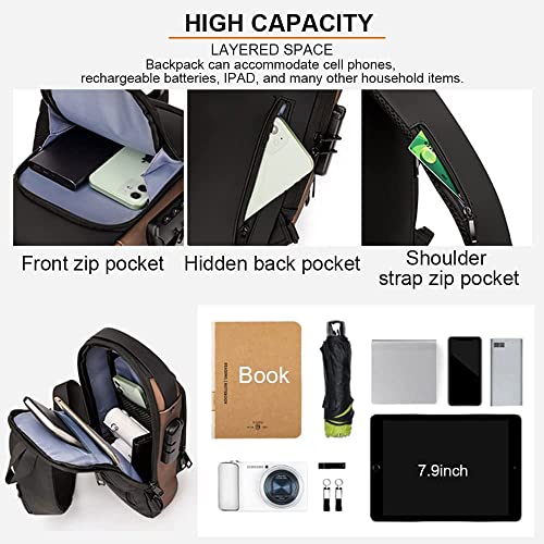 LinJie - شنطة كتف كروس مضادة للسرقة من لينجي ظهر مقاومة للماء كاجوال للرجال مع منفذ شحن USB مناسبة لاي باد 9.7 بوصة