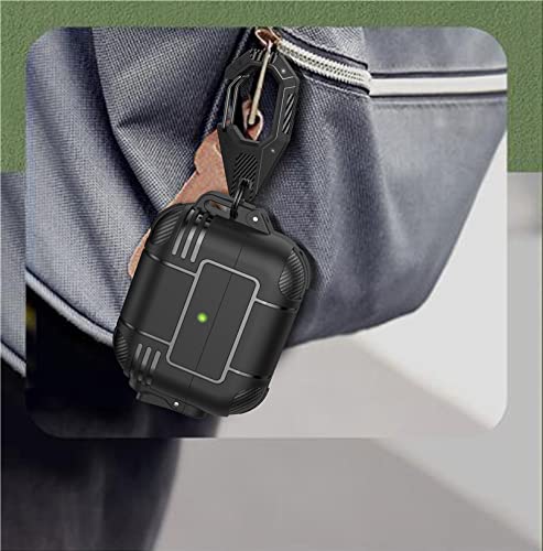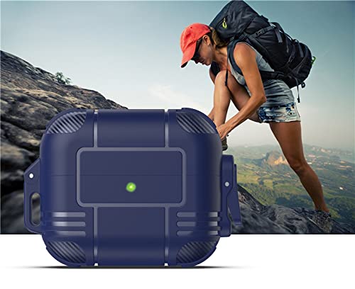 LinJie - حافظة حماية صلبة من فانجارد ارمور بتصميم عسكري مع سلسلة مفاتيح متوافقة مع سماعات ايربودز برو اصدار 2019 (ازرق)، بولي يوريثين اللدن بالحرارة