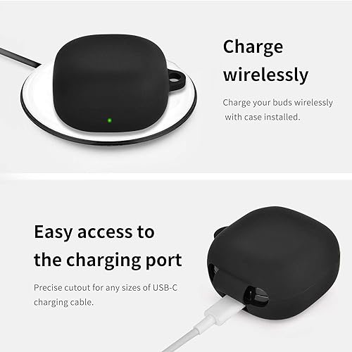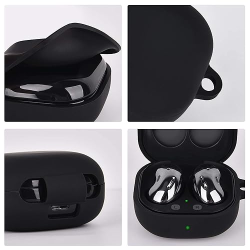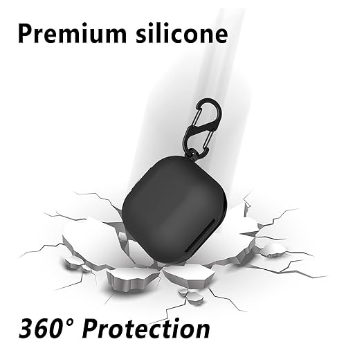 LinJie - جراب حماية شديد التحمل من ألياف كربونية مع بولي يوريثين مقاوم للحرارة يناسب جالاكسي بادز 2 برو (2022)/ جالاكسي بادز برو (2021)/ جالاكسي بادز 2 (2021)/ جالاكسي بادز لايف (2020) من لينجي (أسود سيليكون)