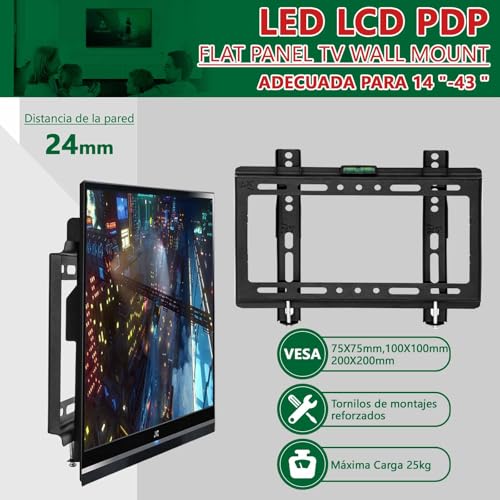 LINK BITS - حامل تلفزيون يثبت على الحائط متوافق مع تلفزيونات ذكية وشاشات من 14 بوصة إلى 42 بوصة، 25 كجم، دعامة فيسا 20 × 20 سم مع شاشة ال اي دي وشاشة ال سي دي 32 بوصة مثبتة على الحائط لغرفة النوم من لينك بيتس