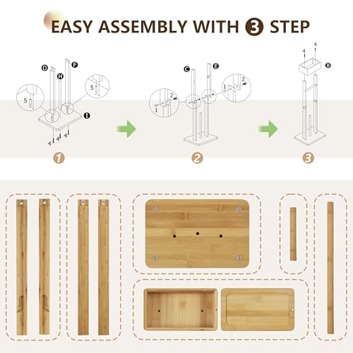 - يمتاز بتركيبه بسهولة دون تعب - سهل التجميع والتركيب دون الحاجة إلى الحفر أو إتلاف الحائط، حامل ورق المرحاض القائم بذاته مثالي للمنازل التي تبحث عن حل تخزين عملي وموفر في الحمامات الصغيرة