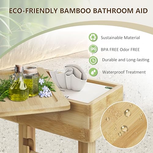 - صديق للبيئة وأنيق — إنه حامل ورق حمّام مصنوع من الخيزران الطبيعي، صُمم من مادة الخيزران الصديقة للبيئة التي لا توفّر مساحة تخزين عملية فحسب، بل تضفي لمسة جمالية أنيقة على ديكور الحمّام، وتنسجم بانسيابية مع مختلف أنماط الديكور الداخلي