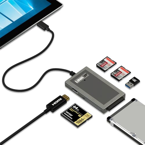 - 【أطلق العنان لسطحك】تعمل محاور لينك اب على زيادة الإنتاجية مع مخرج HDMI بدقة 4K، واثنين من ذاكرة Micro SD وقارئي بطاقات SD قياسيين وواجهة SATA 3.0 ومنفذ USB-A 3.0 لنقل البيانات بسرعة 5 جيجابايت في الثانية.