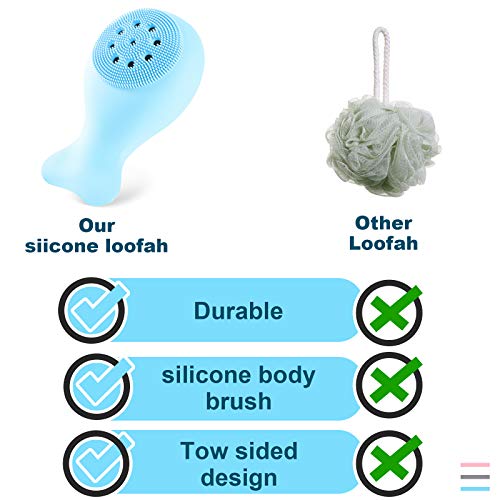 LINLIANG - فرشاة تنظيف الجسم من السيليكون للاستحمام ، ومنظف فرشاة الوجه من السيليكون ومنظف التنظيف اليدوي للتدليك (أزرق)