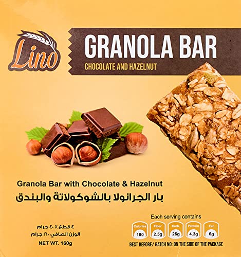 Lino - بار جرانولا بالشوكولاتة والبندق من لينو، 4 قطع (1 علبة)
