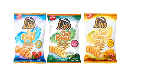 Lino - حلقات شوفان لينو - 60 جرام (مجموعة بنكهة الطماطم والجبنة الشيدر والبصل والكريمة)