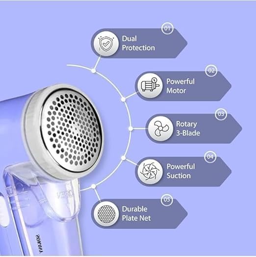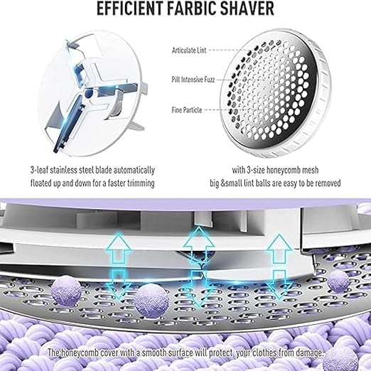 - شفرة حادة وفعالة: مزودة بشفرة من الفولاذ المقاوم للصدأ تزيل الوبر والكرات القماشية بسهولة دون إتلاف الأقمشة