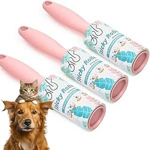 Generic - بكرة صغيرة لإزالة الوبر وشعر الحيوانات الأليفة من الملابس مع ورق لاصق لتنظيف الغبار، فرشاة قماش آمنة على الأسطح لبقايا الطعام وفراء الكلاب والقطط، 10 أوراق، 3 قطع، تصميم مضغوط بزاوية مائلة (لون وردي)
