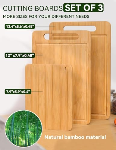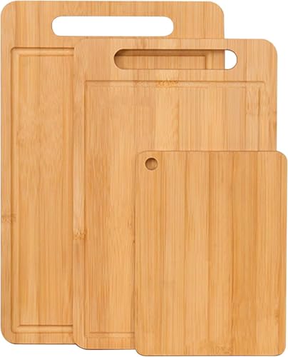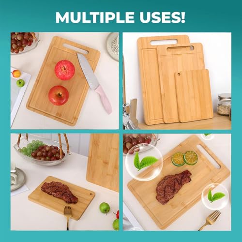 - [ جودة خشبية فائقة] هذه المجموعة من ألواح التقطيع الخشبية المصنوعة من الخيزران للمطبخ مصنوعة من خشب عالي الجودة، مما يوفر المتانة والمظهر المصقول والأنيق.