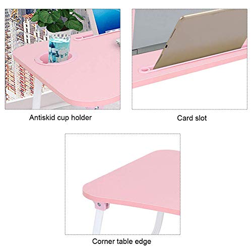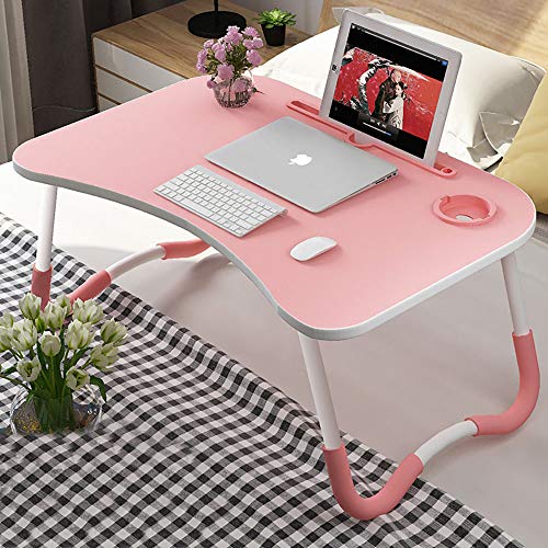 Linyi - طاولة لاب توب قابلة للطي حامل نوت بوك مع ايباد وفتحة كوب للاستخدام الداخلي والخارجي والتخييم والدراسة وتناول الطعام والقراءة ومشاهدة الافلام على الاريكة والارضية بي-بينك خشب مُصنع
