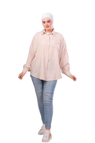 Linzy - قميص مخطط بمقاس كبير من القماش الناعم للنساء من لينزي، مقاس واحد - لون برتقالي
