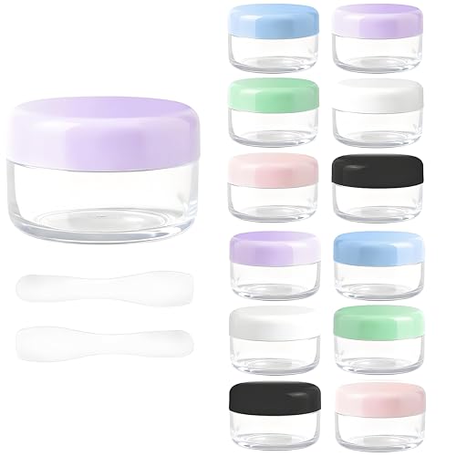 Liobelon - 12 قطعة من حاويات السفر الصغيرة من ليوبيلون، حاويات عينات صغيرة 5 غرام/5 مل مع اغطية، برطمانات سفر بلاستيكية فارغة مانعة للتسرب لبلسم الشفاه ومستحضرات التجميل والوجه والجسم وكريم اليد