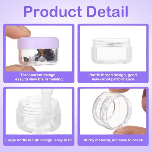 - مجموعة وفيرة: تأتي مجموعة حاويات السفر الصغيرة هذه مع 12 برطمان وملعقتين صغيرتين للكريمة، مما يجعلها أكثر ملاءمة لإخراج المعجون. كل حاوية عينات صغيرة مقترنة بغطاء ملون فريد. بالإضافة إلى التصميم الشفاف في الأسفل، يمكنك تحديد العناصر الموجودة بالداخل بسرعة ودقة.