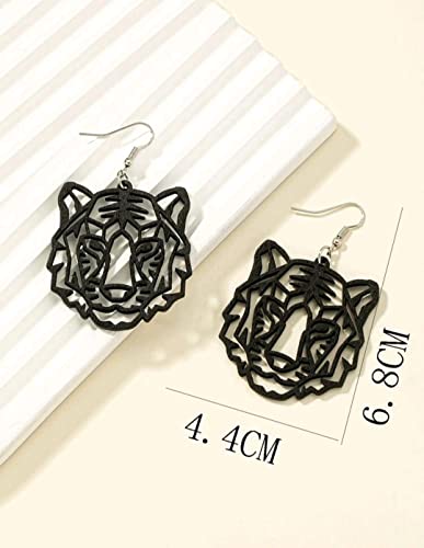 Generic - اقراط اسد مصنوعة من الخشب، خفيفة الوزن، أسود، للنساء