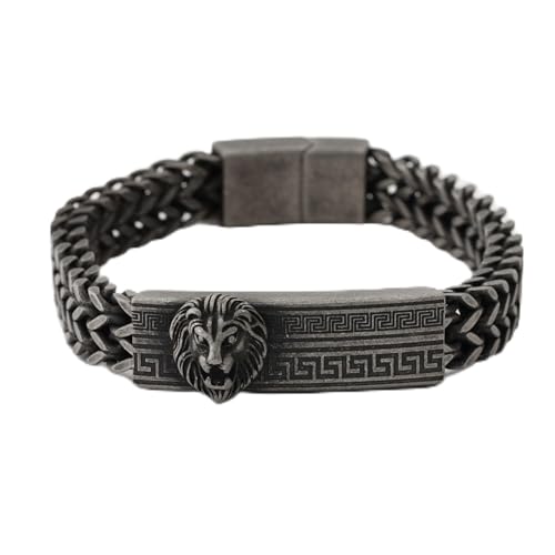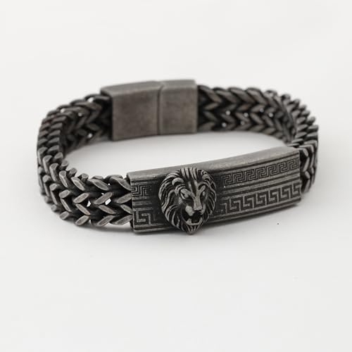 Elegant Bear - سوار سلسلة بتصميم راس اسد، نمط مفتاح يوناني، متوفر باللون الازرق والبرونزي والاسود والفضي