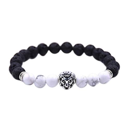 generic - سوار عصري من الحجر البركاني على شكل رأس ليون هيد للرجال