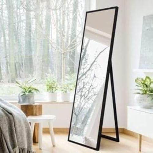 Generic - مراة سوداء مستطيلة الشكل بتصميم حديث من ليون هوم، تثبت على الأرض وقابلة للطي - مقاس 50 سم × 1.70 متر