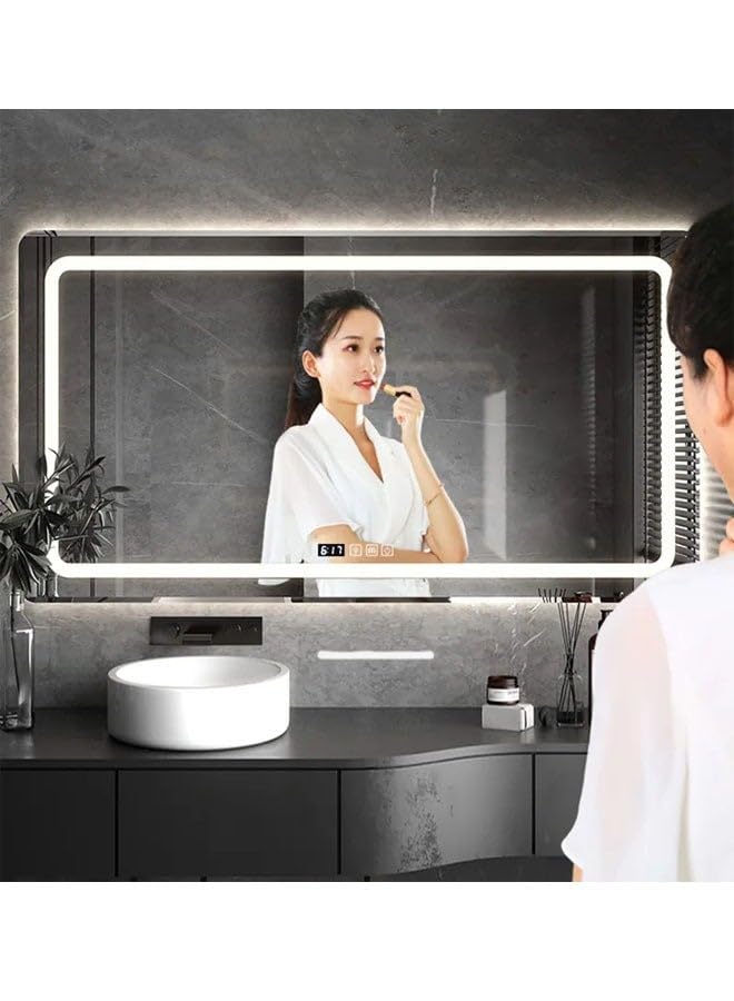 generic - مراة ذكية افقية متعددة الوظائف تثبت على الحائط بتصميم دائري بدون اطار مع اضاءة LED ومستشعر جسم الانسان وتحكم مزدوج باللمس وازالة الضباب وعرض الوقت ودرجة الحرارة 50 × 70 سم من ليون هوم