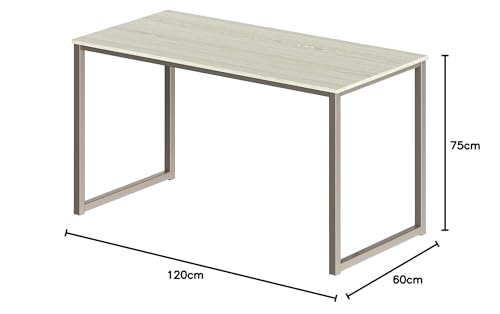 Generic - LION HOME مكتب كمبيوتر فضي بسطح بيج،شاسيه معدن سطح خشب كونتر , مقاس 120×60 سم، مكتب كتابة عصري للمنزل | مكتب دراسة بإطار معدني ورف تخزين | محطة عمل صغيرة موفرة للمساحة