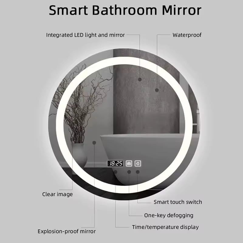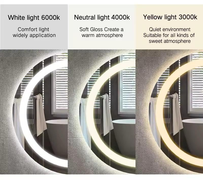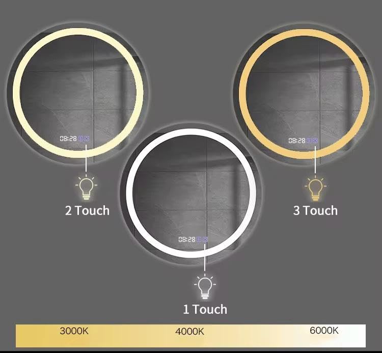- تحكم ذكي في الإضاءة باللمس: قم بالتبديل بين أوضاع الإضاءة الدافئة والمحايدة والرائعة بلمسة واحدة؛ اضغط مع الاستمرار لتعتيم المرآة أو إضاءتها إلى المستوى المفضل لديك.