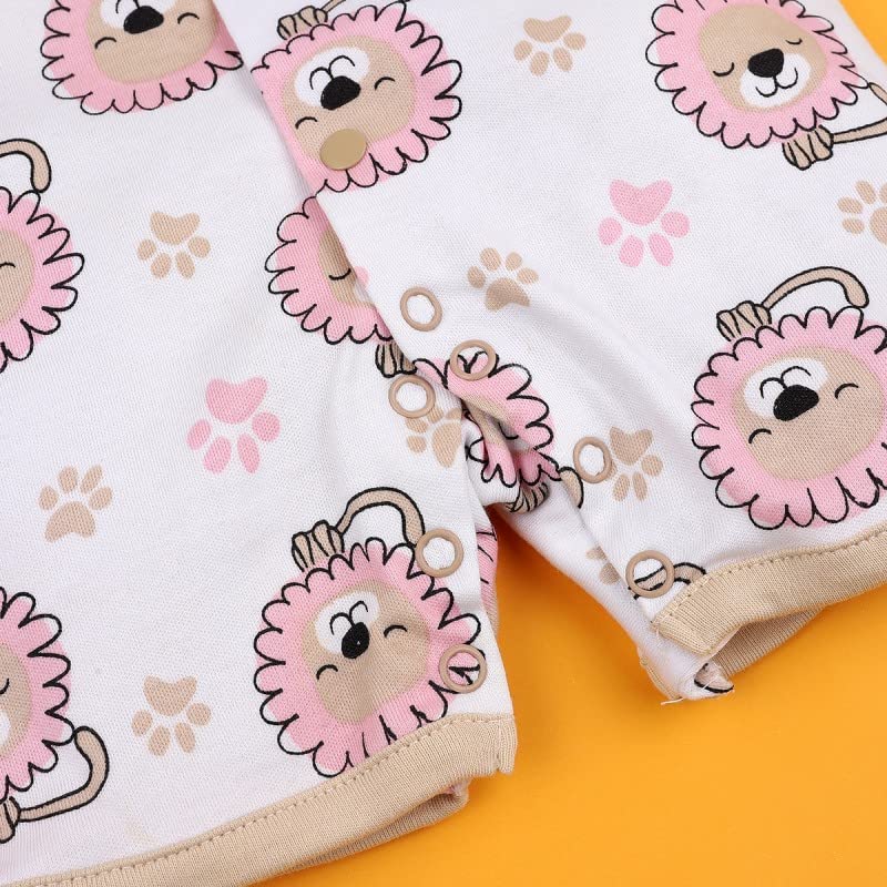 Generic - سالوبيت بطبعة اسد + قبعة انيقة من القطن الناعم عالي الجودة بلون بيج فاتح، مقاس 3-6 اشهر