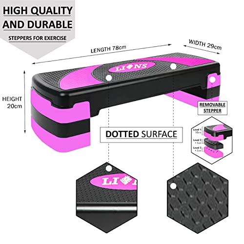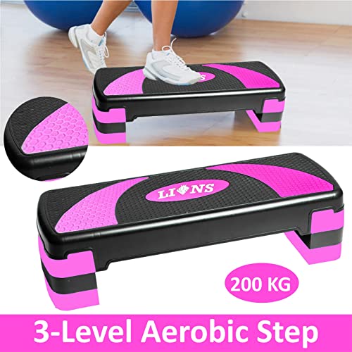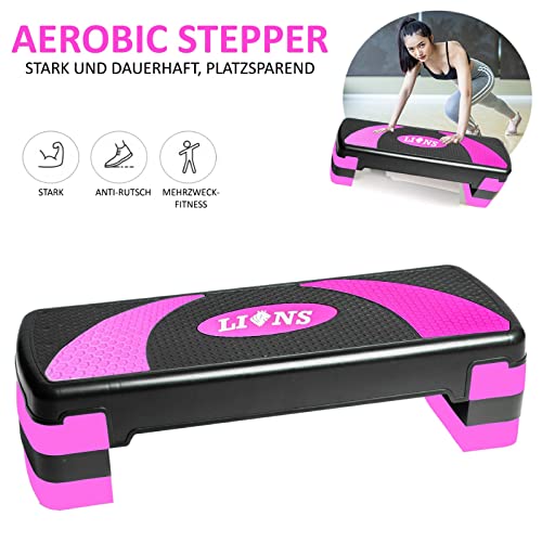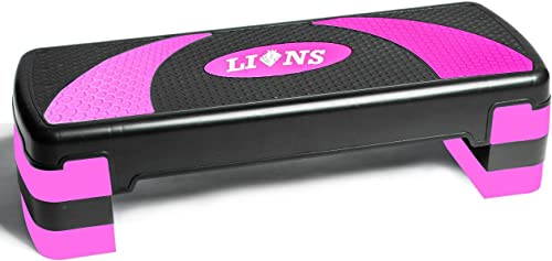 Lions - جهاز تمارين ايروبيك قابل للتعديل، 3 مستويات ارتفاع قابل للتعديل على 3 مستويات، لليوجا واللياقة البدنية، مع سطح غير قابل للانزلاق، لصالة الألعاب المنزلية مع خيارات رافعات إضافية من ليونز