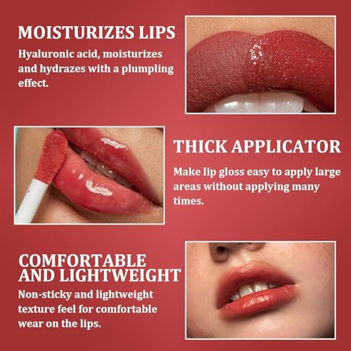Generic - ملمع شفاه، زيت شفاه ملون يدوم طويلا غير لزج ولامع لتكبير الشفاه، زيت مرطب مرطب لاطلالة الشفاه، ملمع شفاه ناعم ولامع للنساء (206)