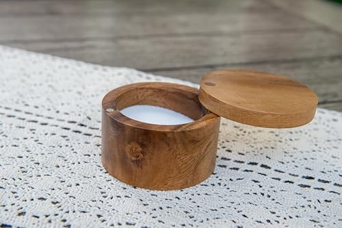 Lipper International - علبة ملح أو توابل من خشب الأكاسيا من ليبر انترناشونال مع غطاء دوّار، بمقاس 8.9 × 6.4 سم