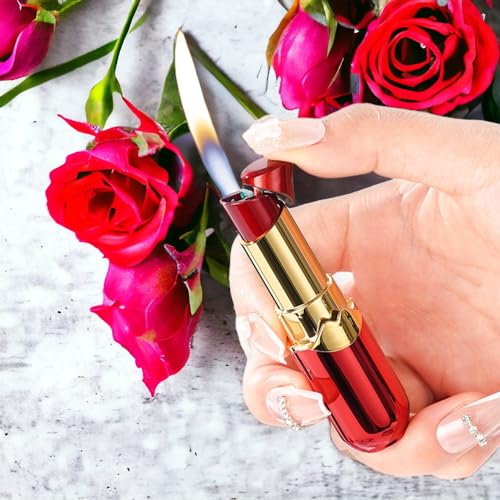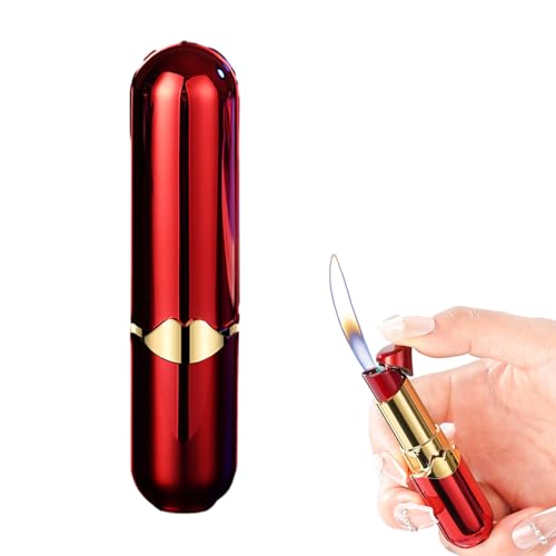 HOCERAA - ولاعة احمر شفاه مبتكرة، ولاعة بوتان بلهب ناعم، ولاعة لهب مفتوحة قابلة لاعادة الملء والتعديل، ولاعة باردة محمولة مقاومة للرياح، هدية عيد ميلاد فريدة للسيدات والصديقات (بدون غاز) - احمر