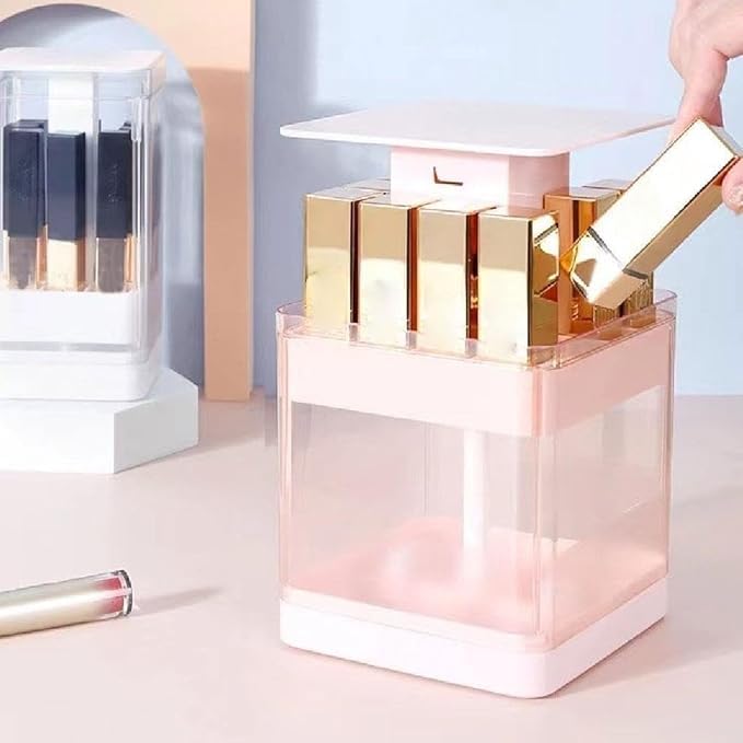 Generic - منظم أحمر الشفاه من البلاستيك، بتصميم عصري، شفاف وردي، مع 12 فتحة، موفر للمساحة مع خاصية الرفع الأوتوماتيكي