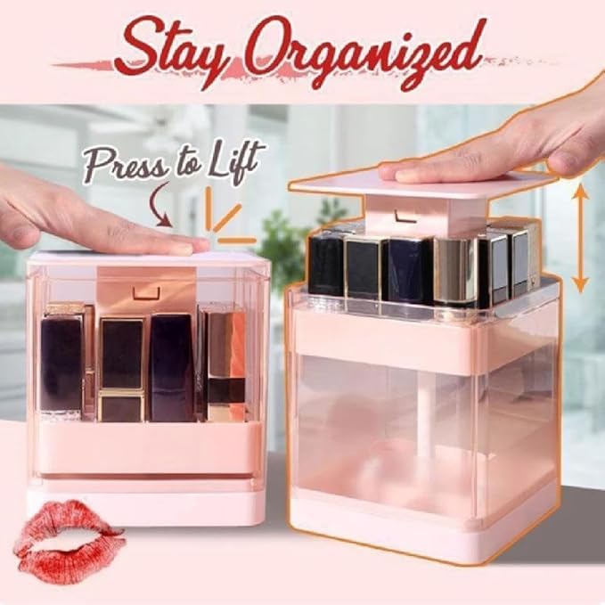 - يعمل تصميم الغطاء العلوي بالضغط على رفع أحمر الشفاه تلقائيًا، مما يضيف لمسة ممتعة وعملية تجعل اختيار الألوان سهلاً كل صباح.