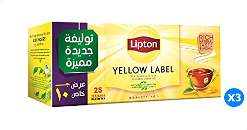 Lipton - أكياس الشاي الاسود يلو ليبل من ليبتون، 3 قطع - 25 كيس