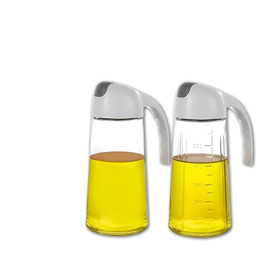 Generic - زجاجة توزيع السوائل في المطبخ - زجاج شفاف للطبخ والخبز، غطاء يغلق تلقائيا لمنع التسربات والانسكابات، حل تخزين الزيت الأنيق والعملي (قطعتين)