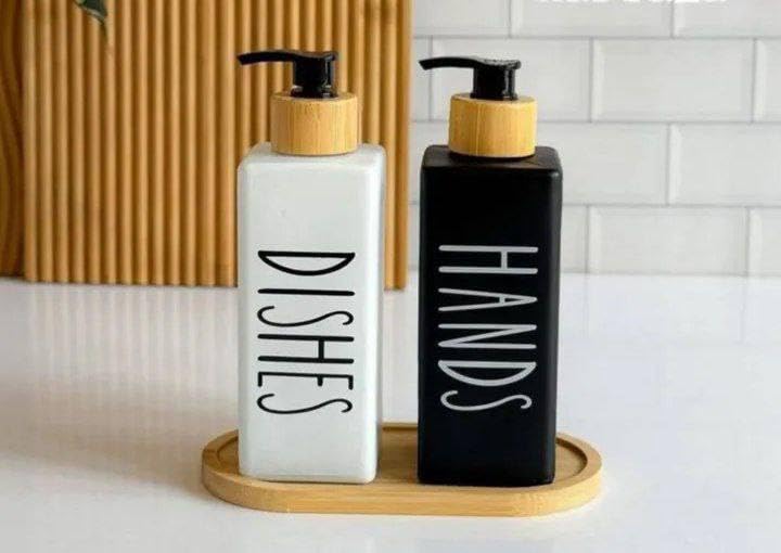 - قاعدة خشبية: صينية تنظيم خشبية مصممة لحمل الموزعات بأمان وأناقة