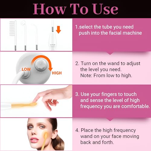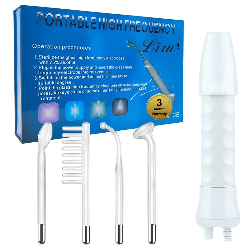 Liru - جهاز محمول عالي التردد لعلاج حب الشباب وشد البشرة وبقع حب الشباب وتقليل التجاعيد والعيون المنتفخة والهالات السوداء وتبديد النمش بتصميم 4 في 1 من ليرو، جهاز محمول باليد عالي التردد للوجه والشعر
