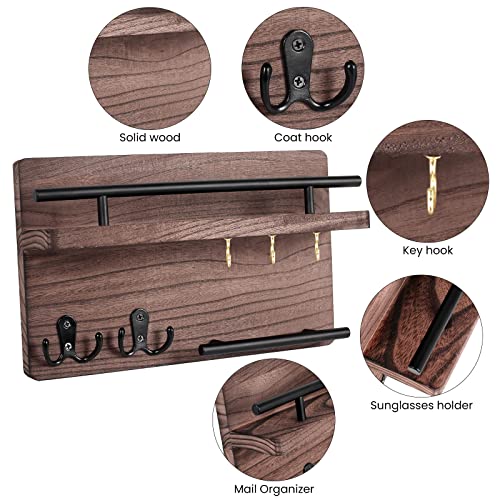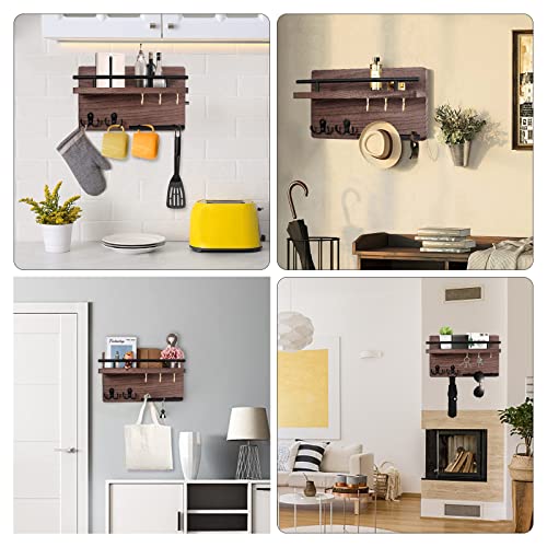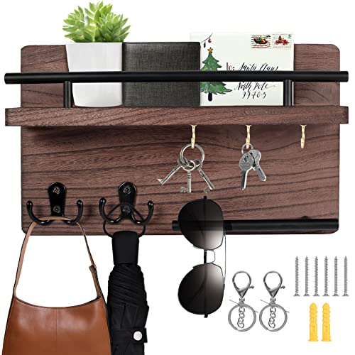 LISSUDA - حامل مفاتيح يثبت على الحائط من ليسودا مع خطافين مزدوجين للمعطف و3 خطافات الخشب الريفي منظم بريد ديكور منزلي للرواق والمدخل وغرفة النوم بني خشب معدن 20.0 رطل 20.0 .